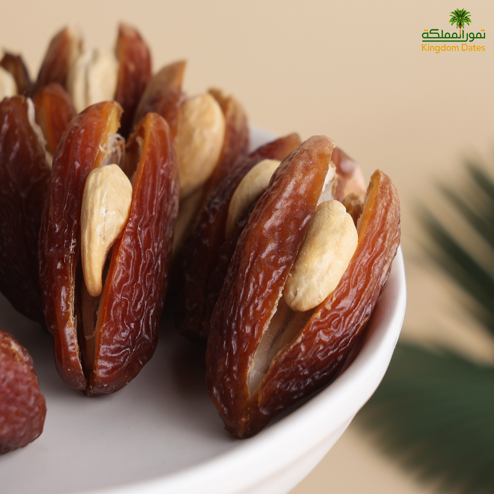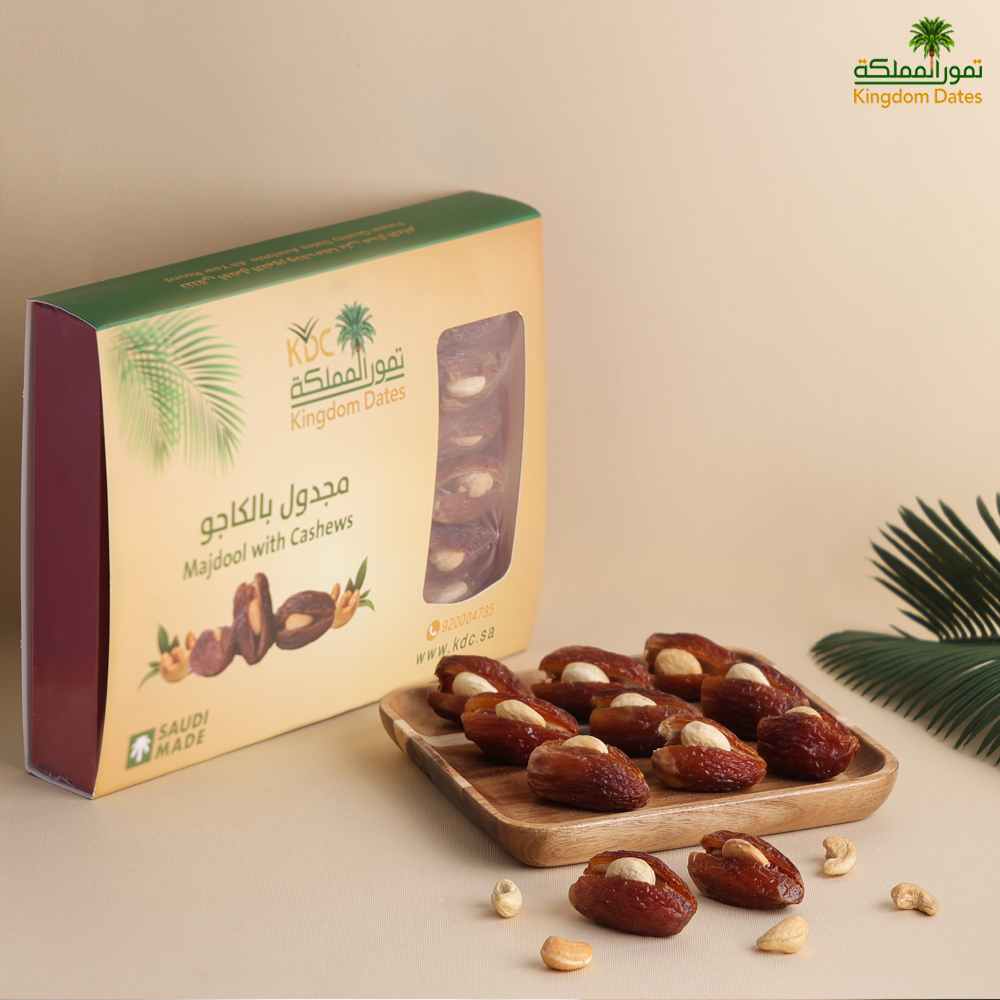 تمر المجدول بحشوة الكاجو هو خيار ممتاز لمن يبحثون عن وجبة خفيفة صحية ولذيذة. حيث إنه يجمع بين فوائد التمر والكاجو، ويقدم طعمًا فريدًا وقيمة غذائية عالية ويتم اختيار تمر المجدول بعناية، ثم يتم حشوها بالكاجو اللذيذ المقرمش. ويعتبر هذا المنتج خيارًا شهيًا وصحيًا كوجبة خفيفة.